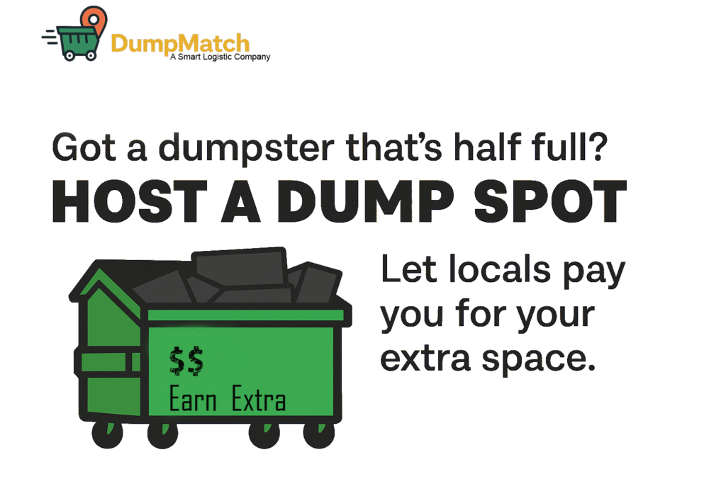 “Serve your community — become a Dump Host. Join DumpMatch’s AI-powered system to deliver fast, efficient waste and recycling solutions. Support your neighborhood, reduce landfill waste, and be a local eco-hero in the circular economy.